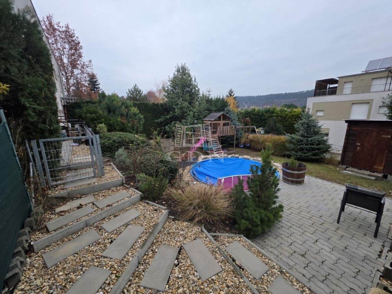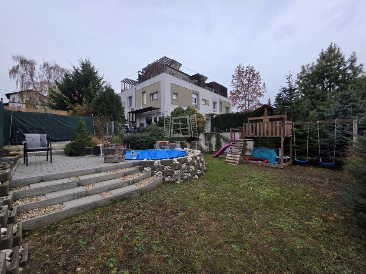 Kiadó, 3 szintes, 95 m²-es, teljesen felújított ikerházrész medencével és nagy kerttel, alacsony rezsi költséggel