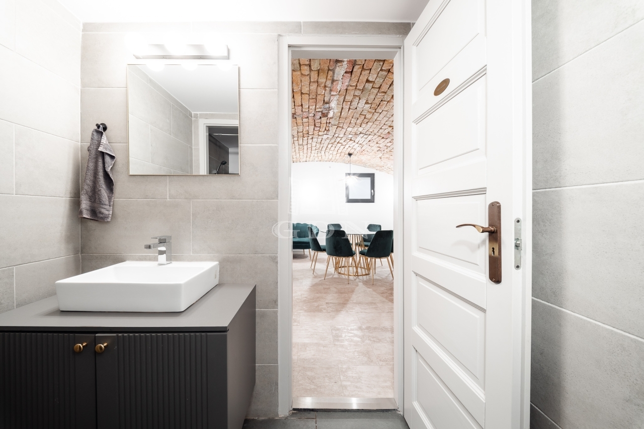 ✅ Különleges, egyedi hangulatot ad a boltíves tégla mennyezet, oldalfalak valamint a fehérre vakolt felületek és modern világítás találkozása