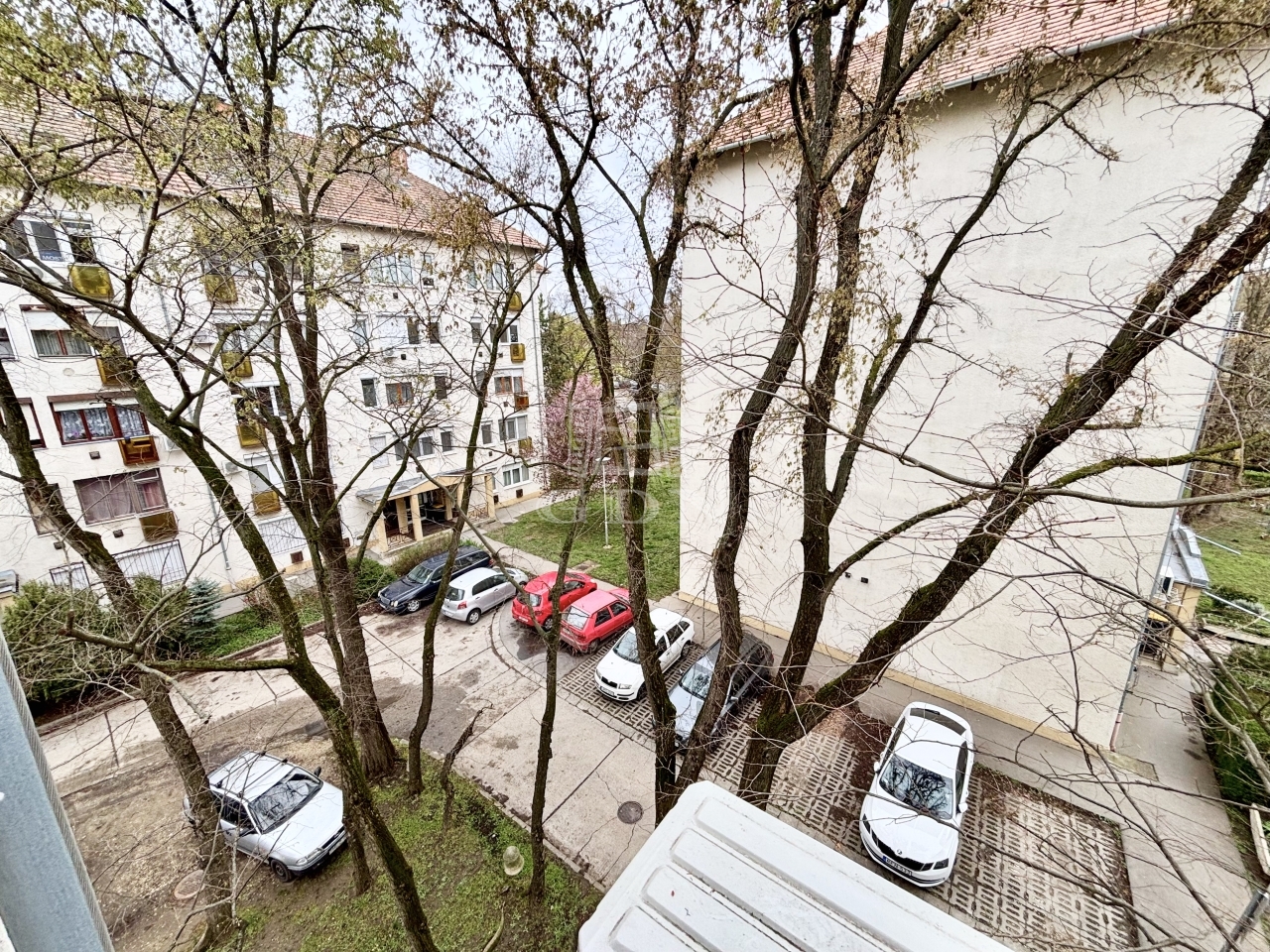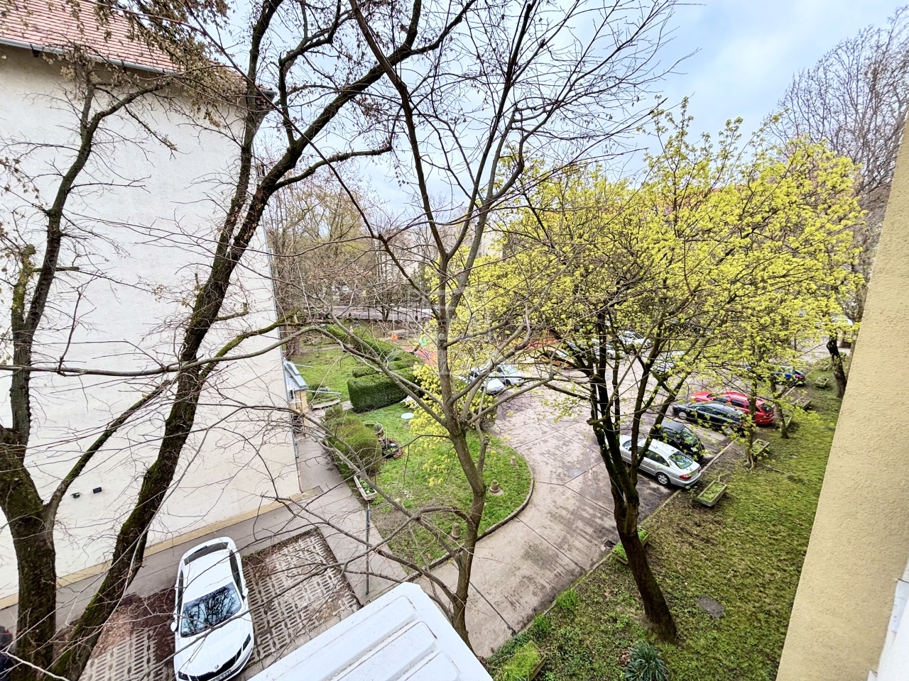A társasház kertjében lehet parkolni.