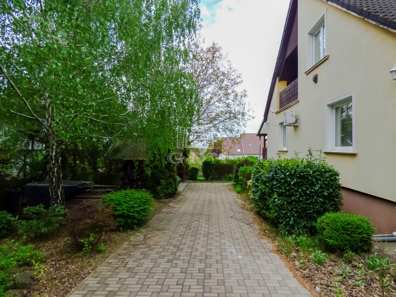 A rendezett, karbantatott kert hátsó, elkerített részében egy veteményes kert található, amely könnyen átalakítható egy esetleges medence, gyerek játszótér kialakítására, pihenésre, baráti összejövetelekre is kiválóan alkalmas lehet.