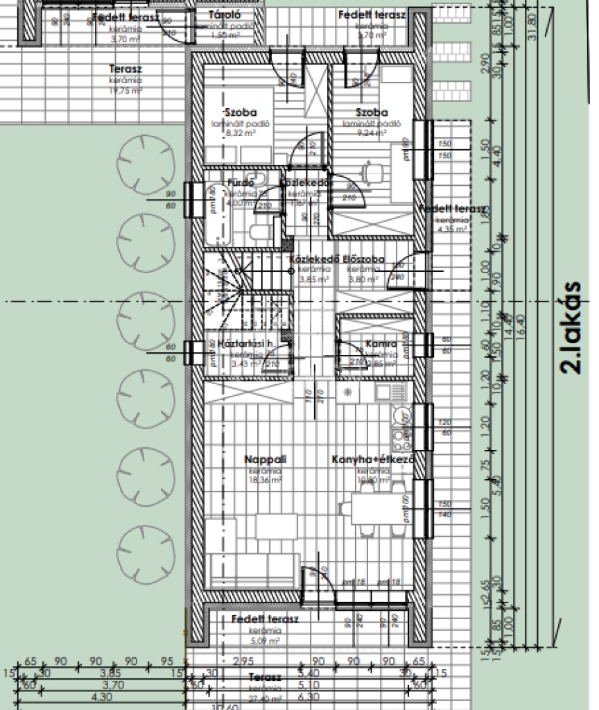 A lakásokhoz gépkocsi beálló és 500 m2-es kertrész tartozik.