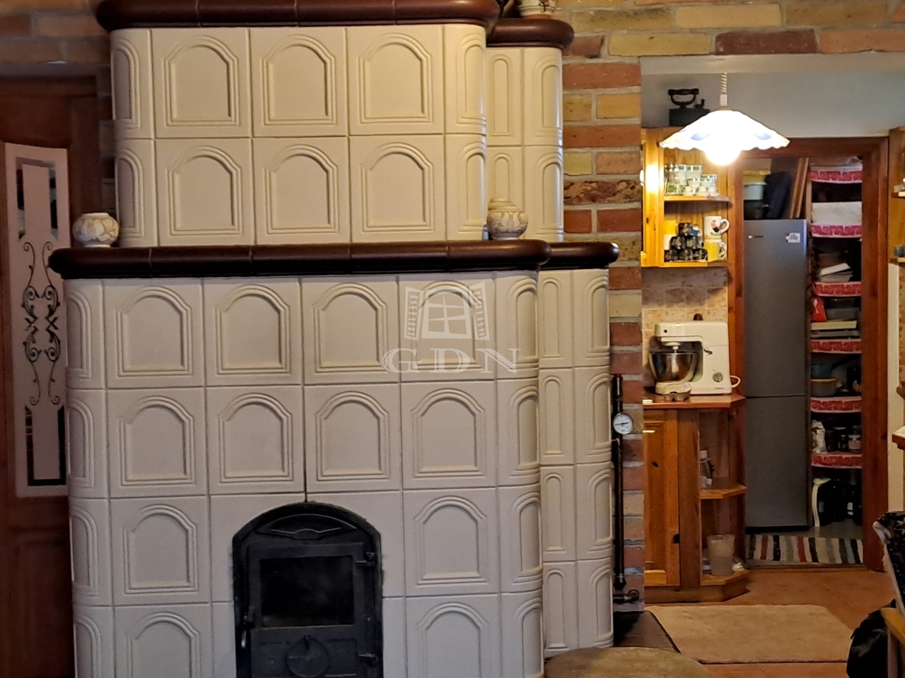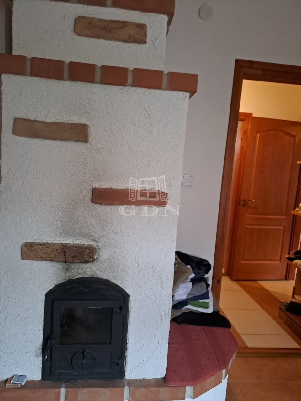 A fűtésről gáz cirkó kazán gondoskodik, a szobákban radiátorokkal, a halban, a nappaliban, és a fürdőszobában padlófütést is kiépítettek. Az egyik szobában téglakályha, a másikban cserépkályha is található