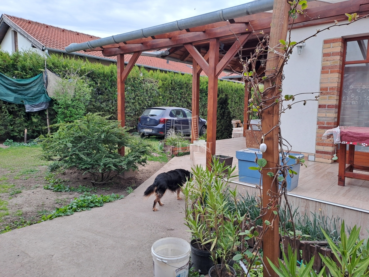 Az udvaron jól karbantartott konyhakert, és gyümölcsfák, cserjék kaptak helyet, az ingatlannak saját kútja van.