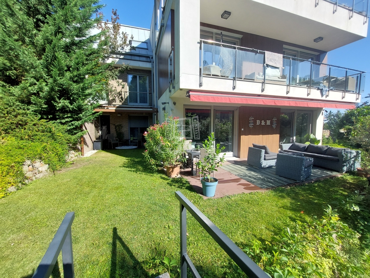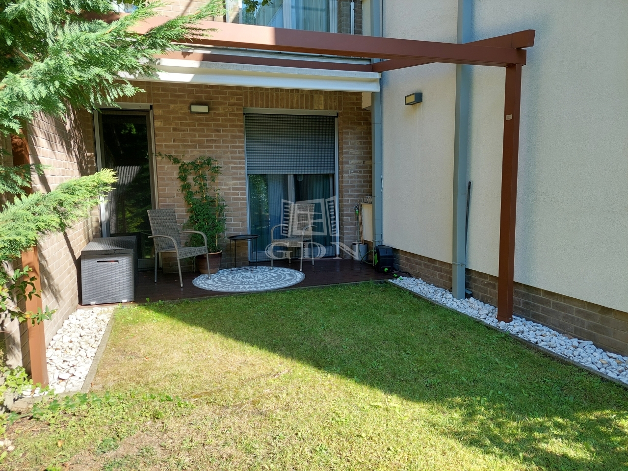 A lakás közvetlen kertkapcsolata és a nagy terasz ideális pihenéshez, családi programokhoz vagy akár vendégek fogadásához is.