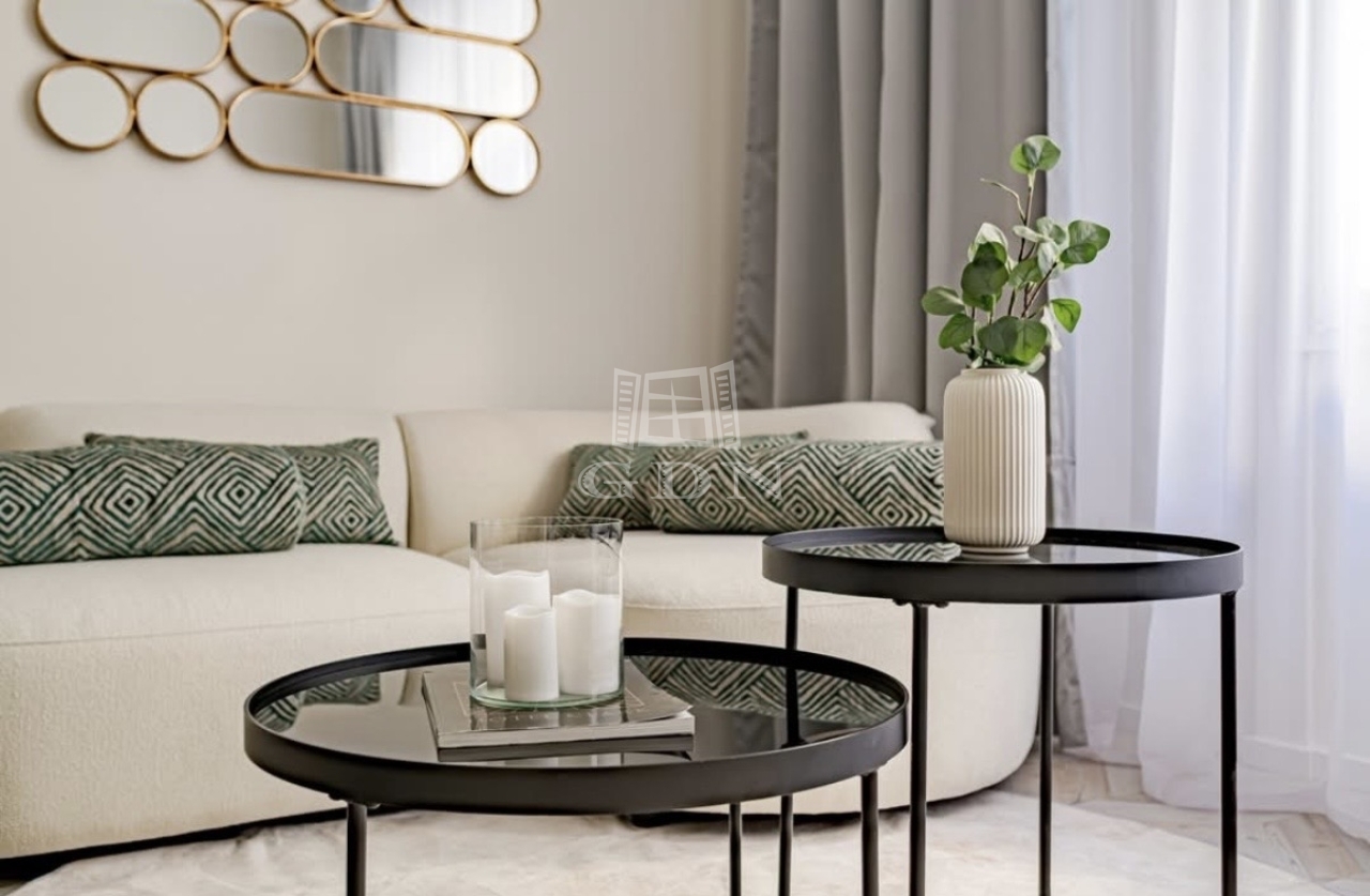 A tágas nappali, az elegáns hálószoba, a külön walk-in gardrób, valamint a modern, prémium anyagokkal kialakított konyha és fürdőszoba együtt teremtik meg a letisztult luxus atmoszféráját.