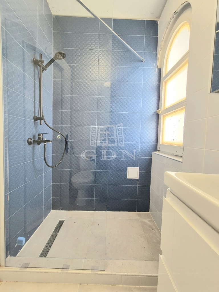 A földszinten az ablakos-világos konyhát, egy méretes, benapozott, teraszkapcsolatos, kandallóval rendelkező nappalit, hálószobát, zuhanyzós fürdőszobát találunk.