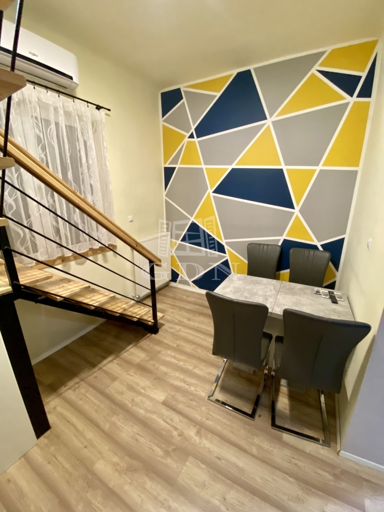 Az épület két különálló lakrészből áll, egy 90 nm-es , 3+1 félszobás, valamint egy 72 nm-es, 2+2 félszobás, külön bejárattal, saját mérőórákkal.
