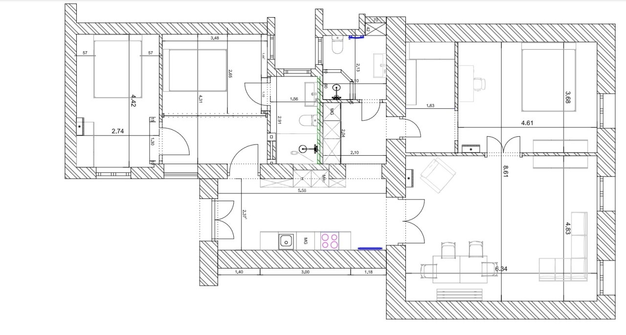 Tágas nappali + 2 hálószoba + vendégszoba/dolgozó