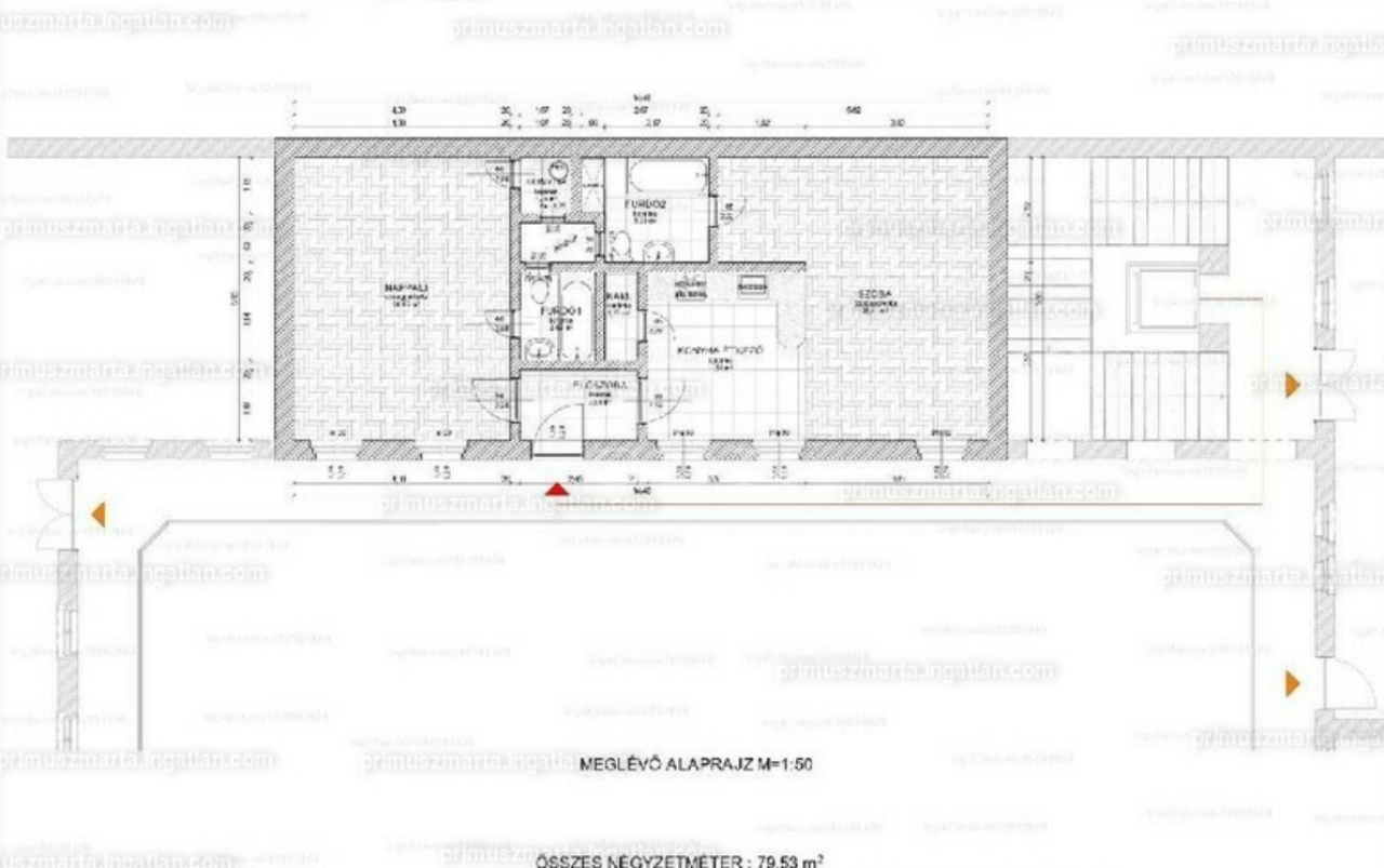 For sale: a 79 m², courtyard-facing, bright apartment, currently divided into two fully functional units, each with separate entrances, providing immediate rental income if purchased with tenants.