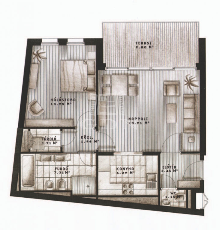 57 m2Alapterület 2 Szoba