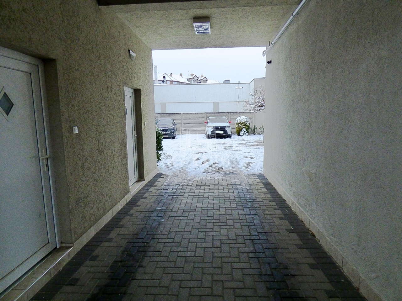 Az ingatlanhoz tartozik, a vételár részét képező belső, zárt udvaron lévő felszíni gépkocsi beálló, elektromos autó töltésére alkalmas kiállással.