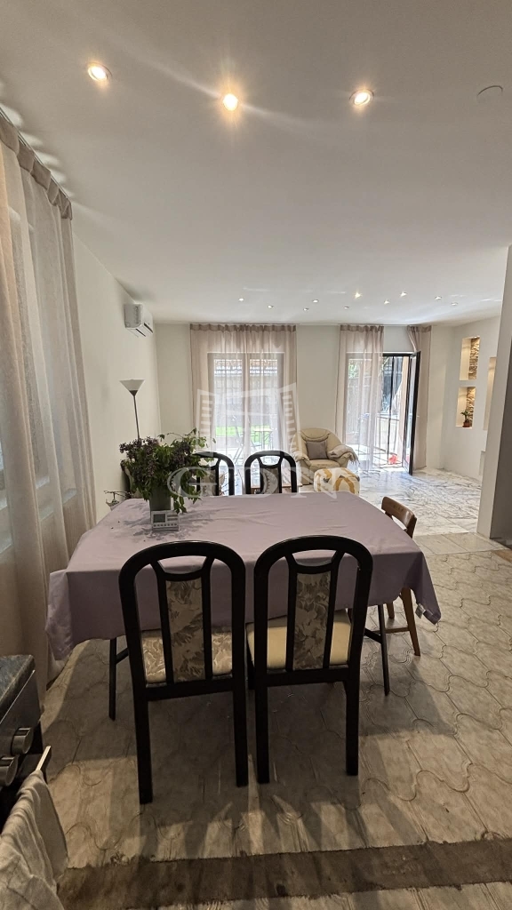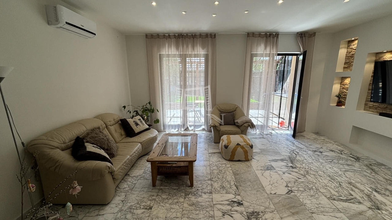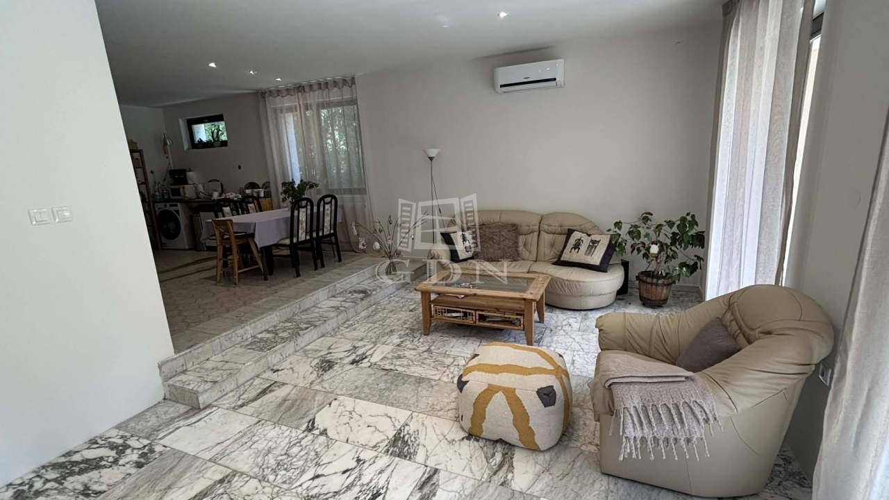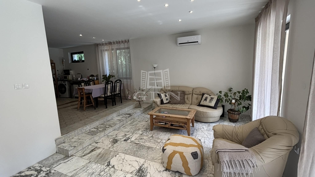 Ebbe a házba belépve egy tágas nappali tárul elénk kilátással a szépen gondozott kertre!