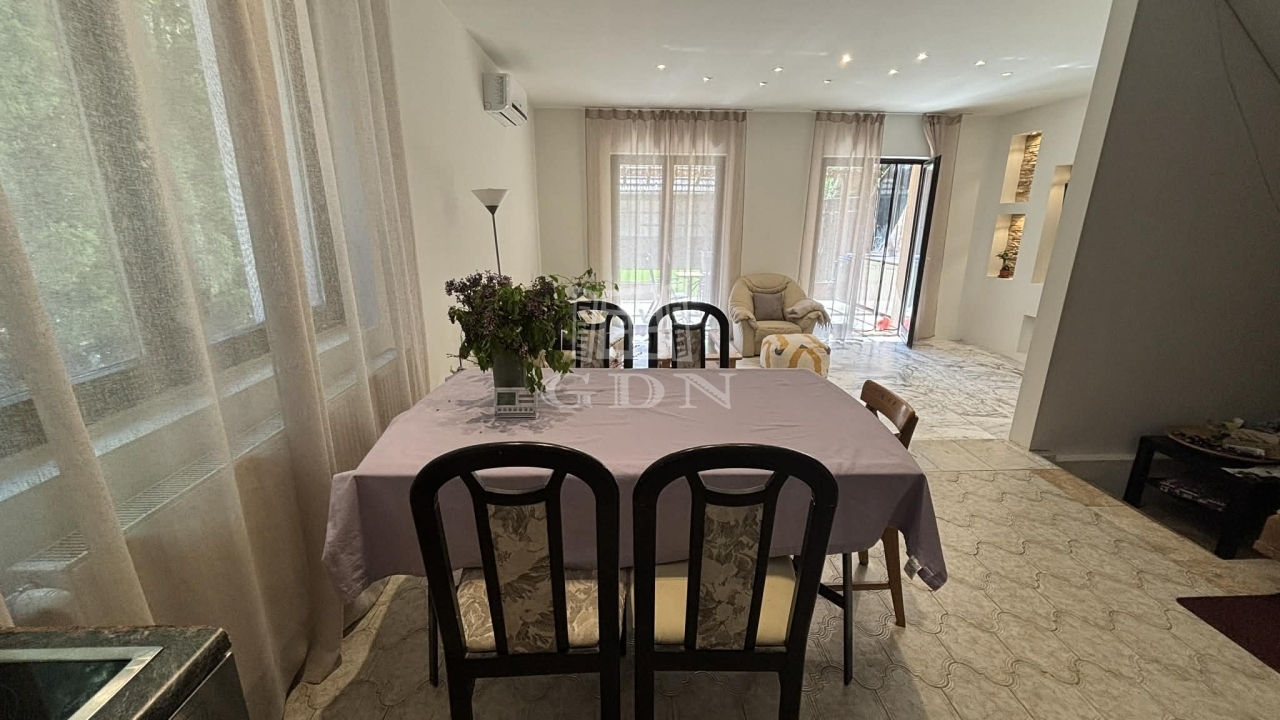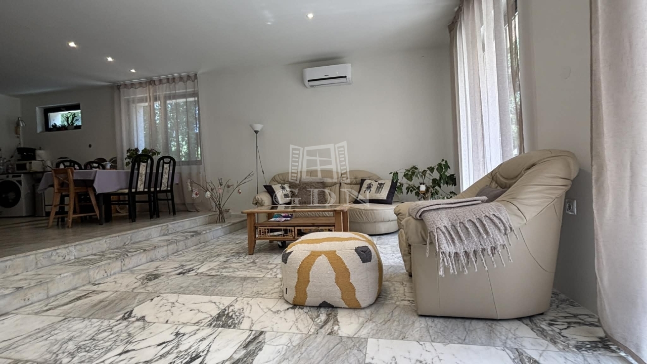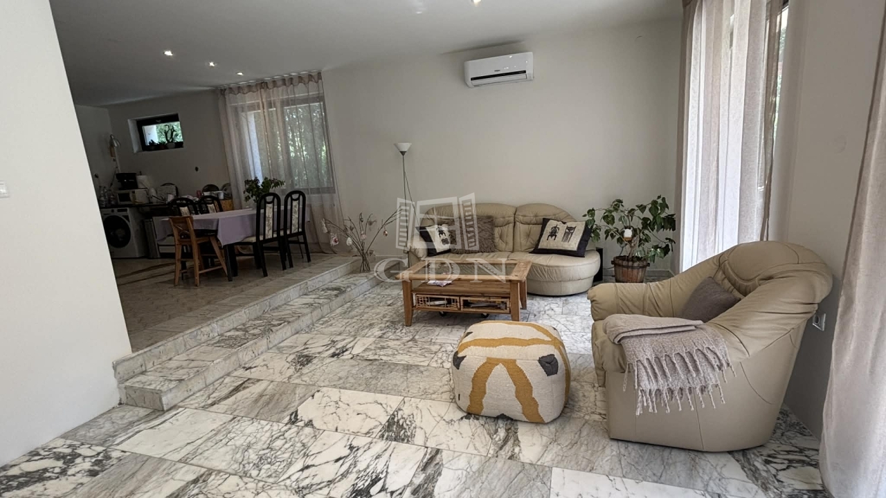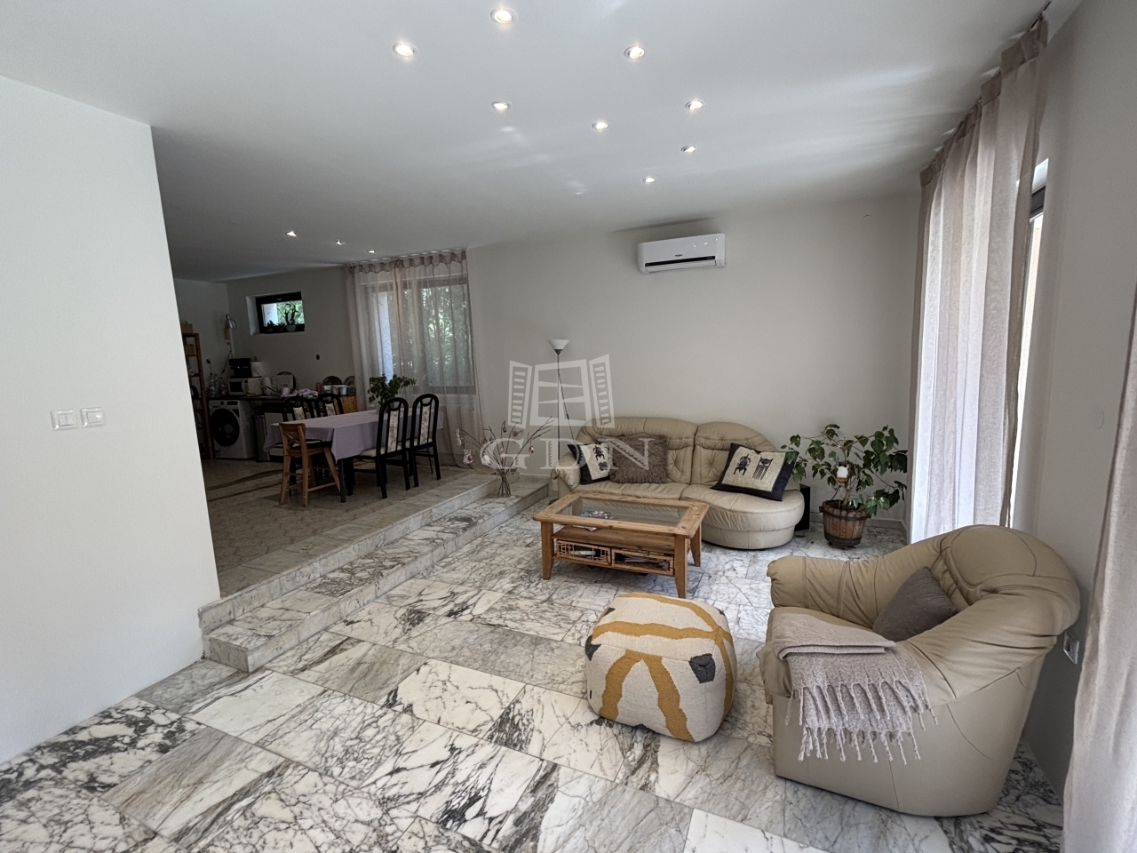 Ebbe a házba belépve egy tágas nappali tárul elénk kilátással a szépen gondozott kertre!