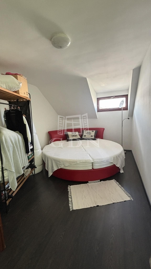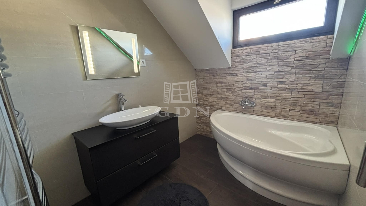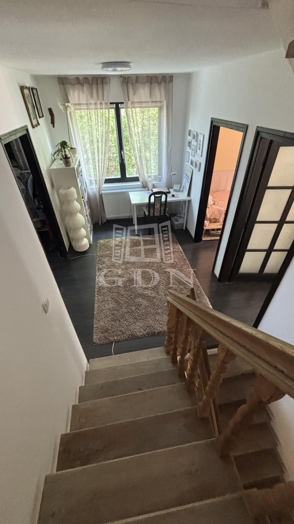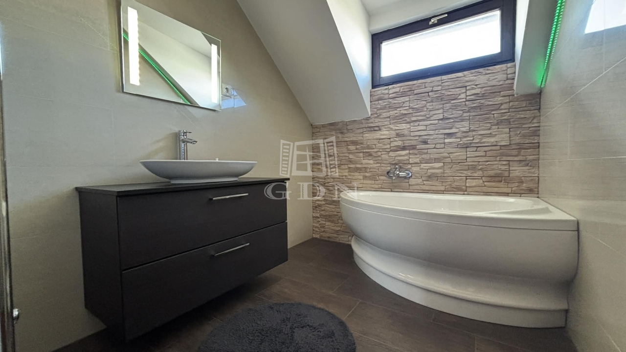 Emeleten : 70 négyzetméteren 2 hálószoba, 1 dolgozószoba, fürdőszoba káddal, tusolóval, külön wc