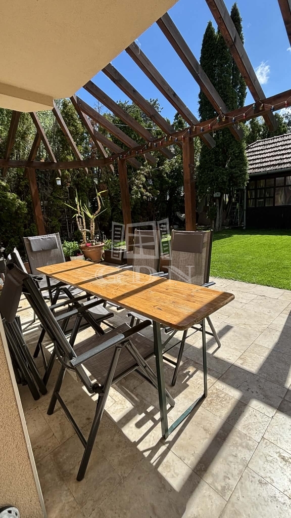 A kertben nagy teraszon gyönyörködhetünk a szép zöld fűben, a napsütésben!
