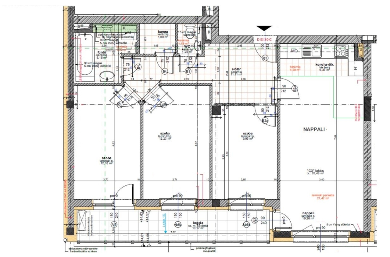 • Elosztás: nappali + 3 külön nyíló hálószoba