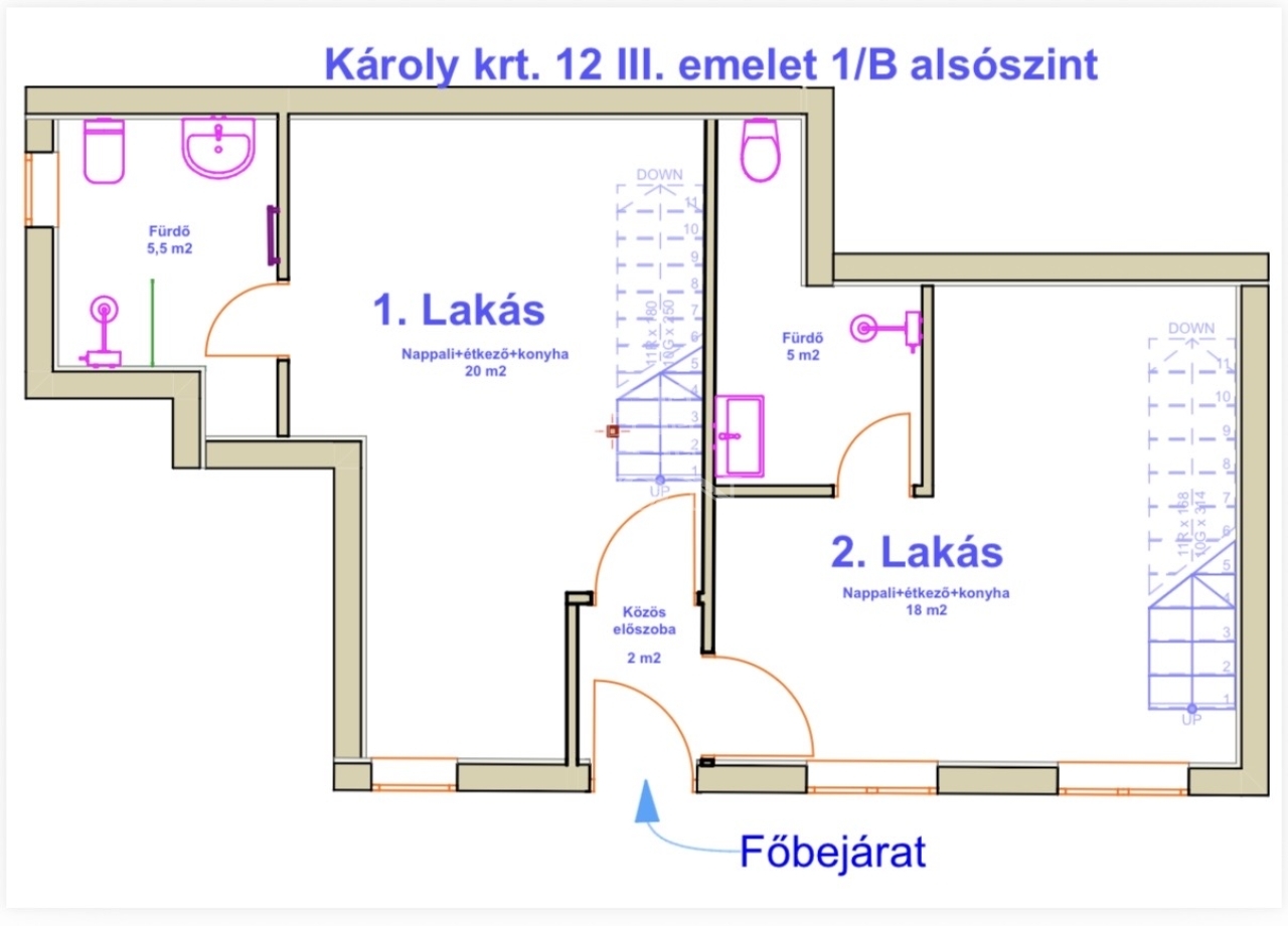 • Alsó szint: 20 m²