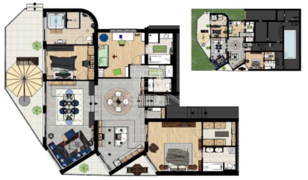 Fontos megemlíteni, hogy a kertkapcsolatos ingatlan hálószobai gardrób válaszfalának átalakításával akár közvetlen, privát kapcsolatot lehet biztosítani a wellness részhez!