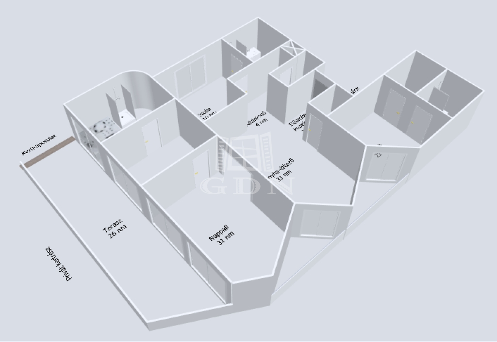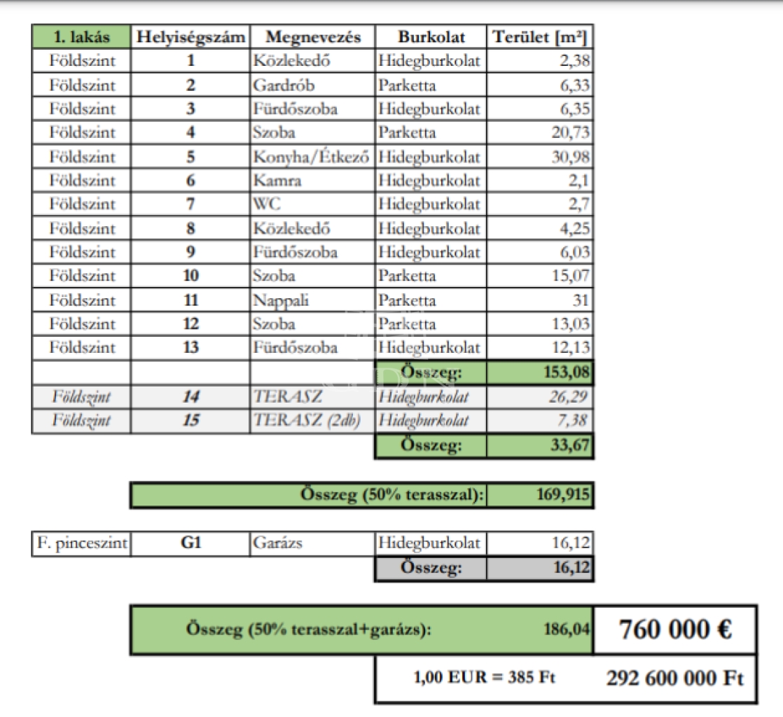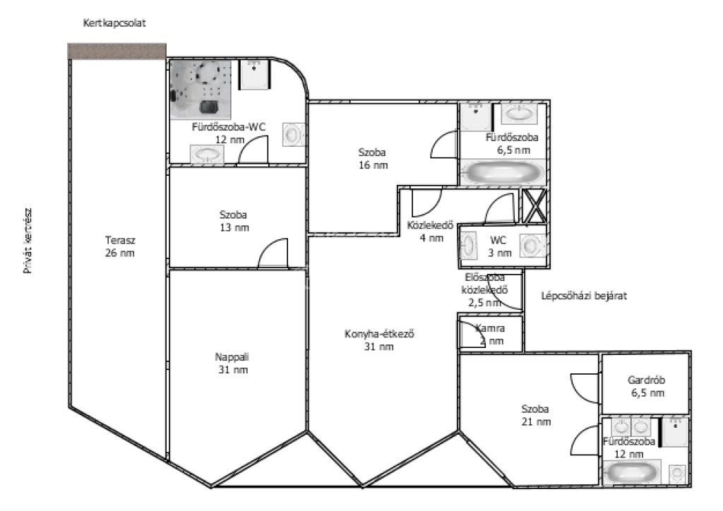 - kertkapcsolatos nagyméretű terasz: 35 m2,