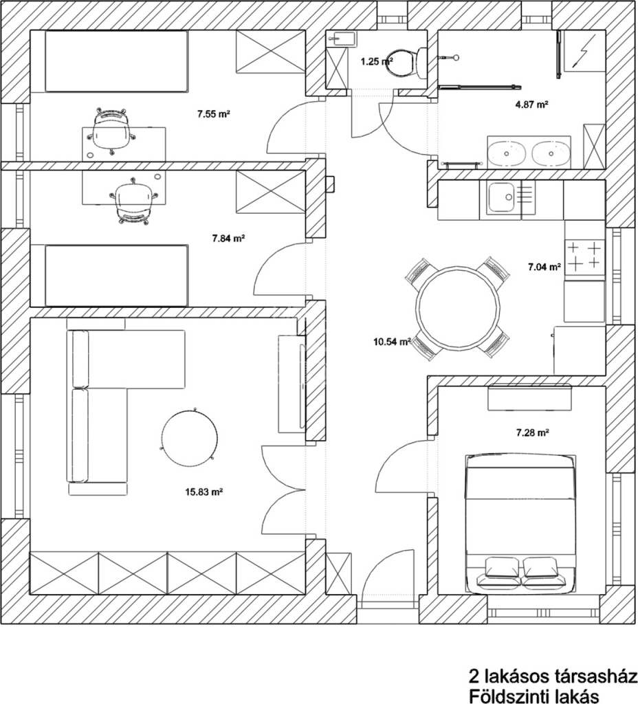 62 m² + 5 m² terasz, 2 szoba