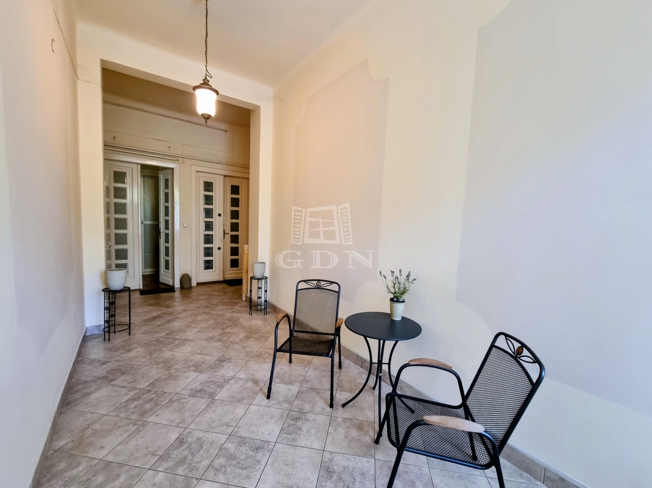 Térkiosztása: bejáratnál klasszikus előszoba/közlekedő fogad minket, ahonnan megközelíthető a káddal és mellékhelyiséggel felszerelt fürdőszoba, továbbá egy vendég mellékhelyiség és az amerikai konyhás nappali ahol a konyha résznél egy kamra is helyet kapott. A nappaliból egy négyszárnyas ajtón bejutva közelíthetjük meg a hálószobát, ahol praktikusan - a tárolást segítő -  átjárható gardrób lett kialakítva. A társasház külső építészeti stílusjegyei szépen harmonizálnak a lakás belső kialakításával, a felújítások során megőrizték a belső ajtókat, a fotókon látható bútorok megállapodás alapján megvásárolhatóak. A kertben egy gépjárműnek felszíni bálló lehetősége állhat rendelkezésre, picében további tárolási lehetőség is megoldott. Mindazoknak ajánlom akik Zugló kiemelt negyedében, kiváló lokációnál keresnek egy stílusos, igényes, kényelmes otthont, valamint azoknal is akik több generációval költöznének, hiszen a szomszéd 86 nm-es ingatlan is eladó, amely szintén megtalálható kínálatunkban.
