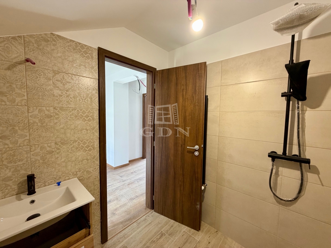 Az emeleti szinten két hálószoba, egy fürdőszoba és egy erkély található, már elektromos redőnyökkel felszerelve.