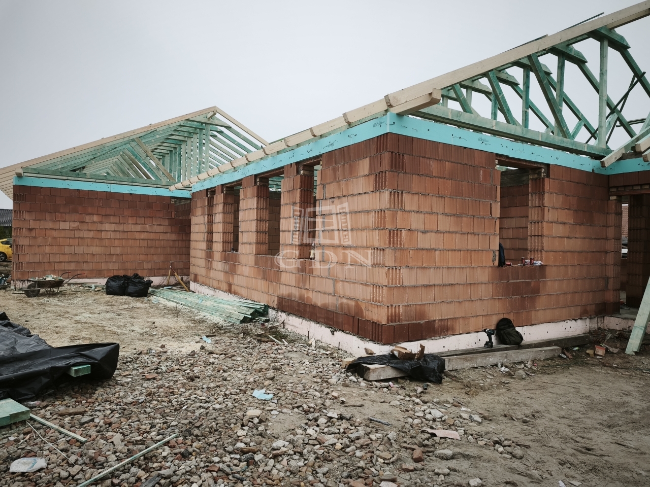 - Porotherm 30-astégla + 15cm külső szigetelés,