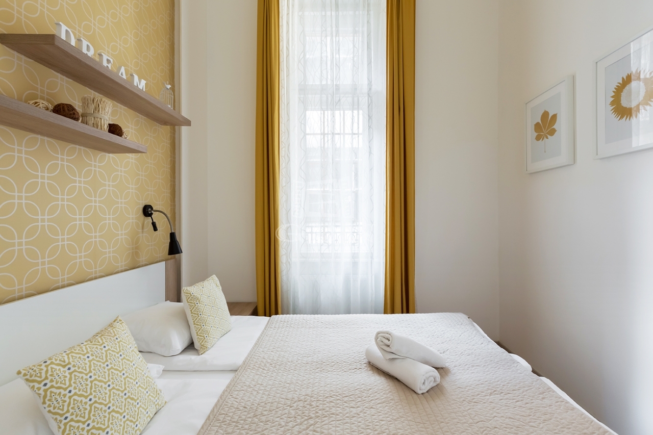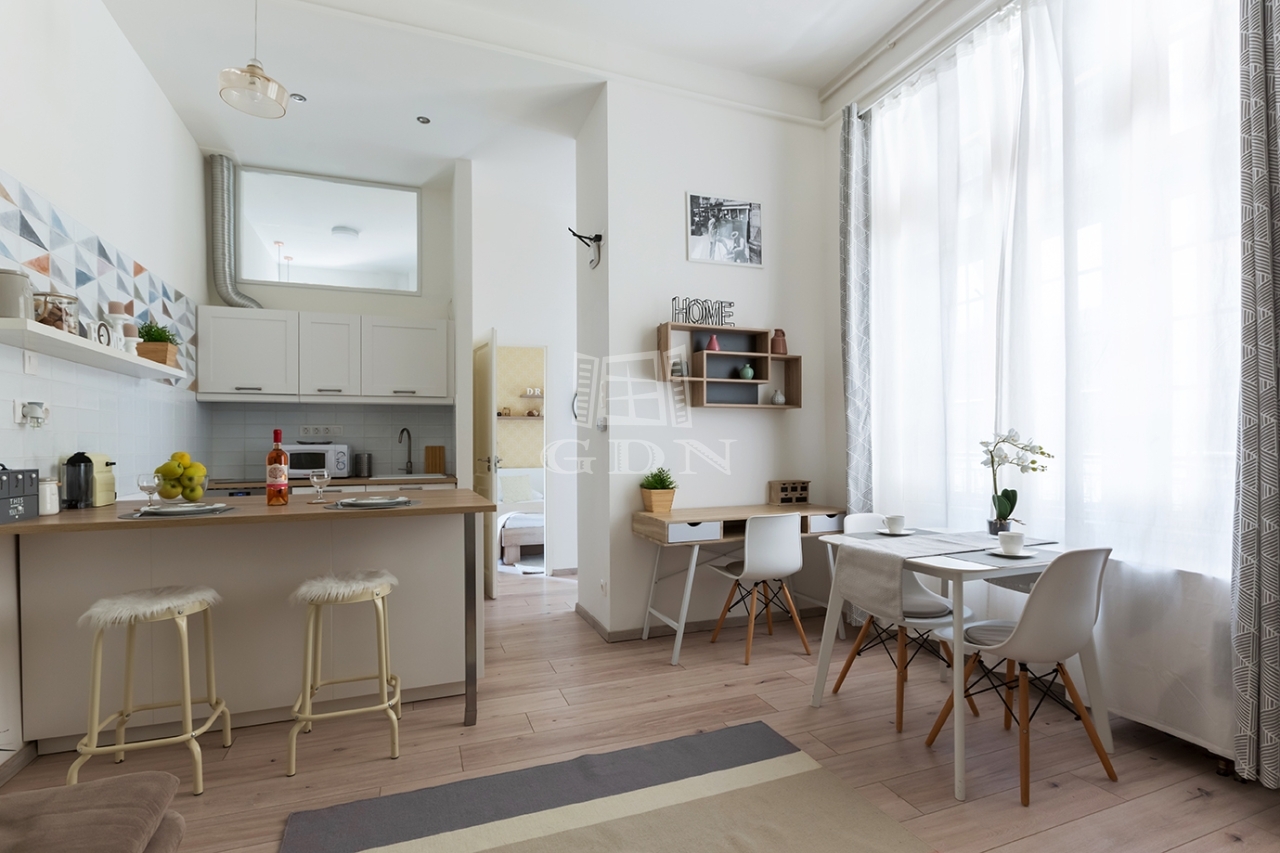 Az ingatlan Terézváros központi részén található. A lakás egyediségét a tradicionális polgári hangulat a finom belsőépítészeti megoldások és az egyedi lakberendezői munka teszi izgalmassá.