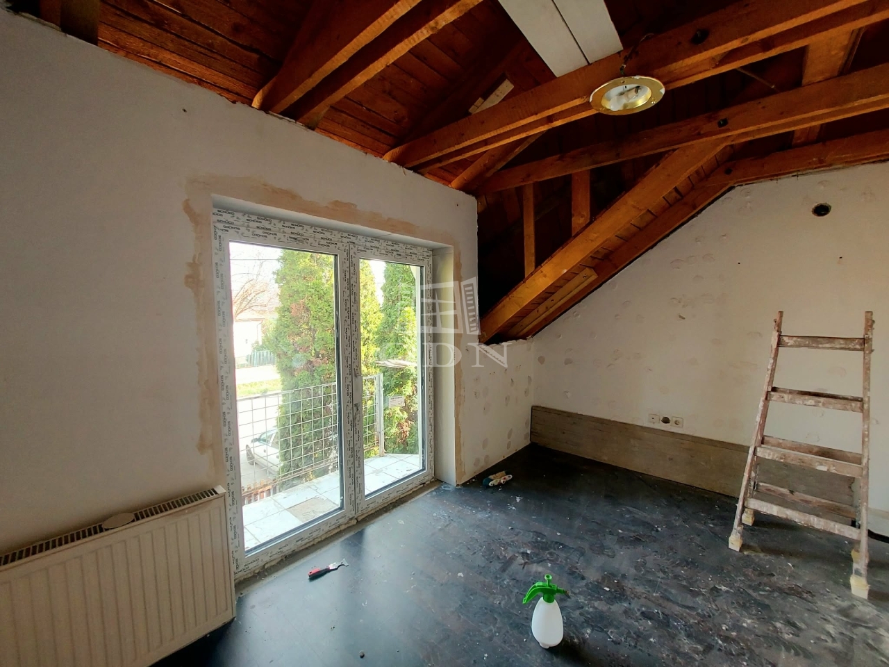 Eladásra kínálok egy 140 nm nagyságú téglaépítésű felújítás alatt álló 2 szintes ikerház felet. A földszinten hatalmas amerikai konyhás nappali, fürdőszoba, és egy külön bejáratú önálló lakrész: szoba (akár iroda) kis fürdőszobával és fedett terasz találhatóak. Az emeleten 4 hálószoba, fürdőszoba, közlekedő várja lakóit. A nyílászárók műanyagra lettek cserélve. A fűtés gázcirkó készülékről működik. A kert rendezett. 3 autó számára fedett beálló biztosított. Az épület hőszigetelést kapott. A tető is meg lesz újítva. Iskola, óvoda, rendelő a közelben.