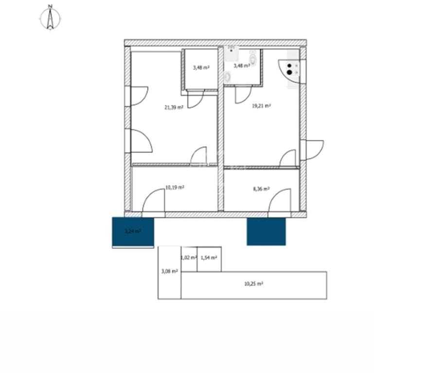 - szuterén lakások: 39.42 m2, 39,42 m2
