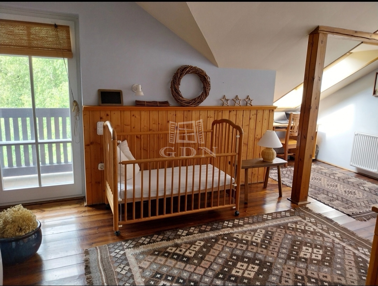 Az emeleten vendégszoba, két hálószoba gardróbbal, terasszal, fürdőszoba és előtér található.