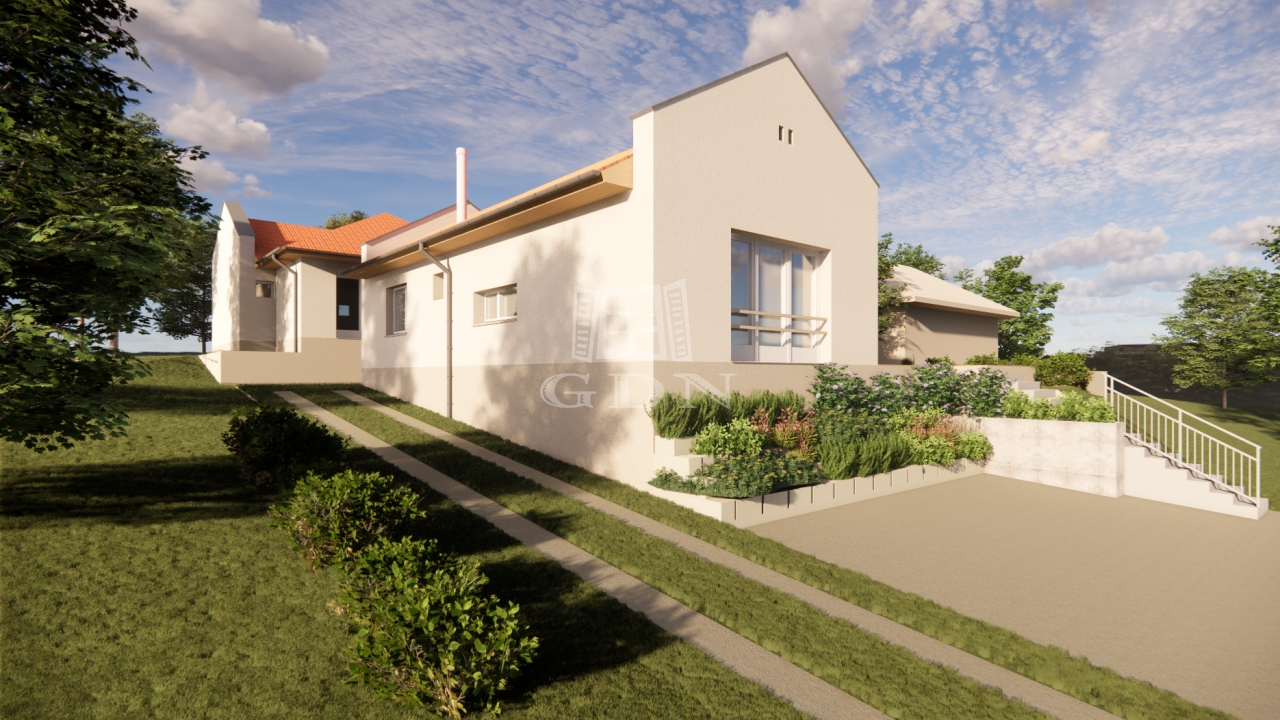 A ház örökpanorámás, csendes zöldövezetben található, mégis csak 15 perc autóval a belvárostól. A közcsatornázás 2027 eleji moratórium feloldásig fúrt kúttal és szikkasztóval megoldott, így a mindennapi használat biztosított. A képek látványtervek, az építkezés folytatása az új tulajdonos bevonásával történik.