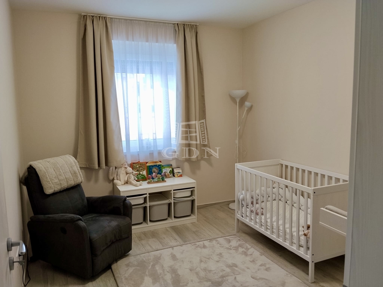 A ház nettó 95,49 négyzetméteres lakóterülettel rendelkezik, amelyet átgondolt, praktikus elrendezés jellemez. A tágas, amerikai konyhás nappali a lakás központi tere, amely természetes fényben gazdag, jól berendezhető, és közvetlen kapcsolatban áll a kerttel. A három külön nyíló szoba kényelmes életteret biztosít akár családok számára is. A konyha teljesen gépesített, a beépített bútorokkal és eszközökkel együtt a vételár részét képezi, ahogyan a fürdőszoba berendezése és a zuhanykabin is. A padlástér további praktikus tárolási lehetőséget kínál.