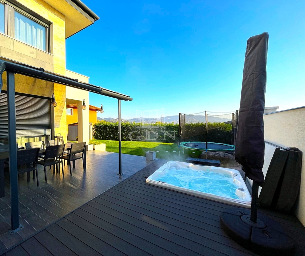 - tágas terasz, szaletlivel és beépített, süllyesztett JAKUZZIVAL,